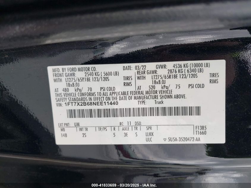 Цвет ЧерныйЦилиндры 8Привод Полный приводVIN 1FT7X2B68NEE11440Состояние СтационарноПовреждения Передняя или задняя