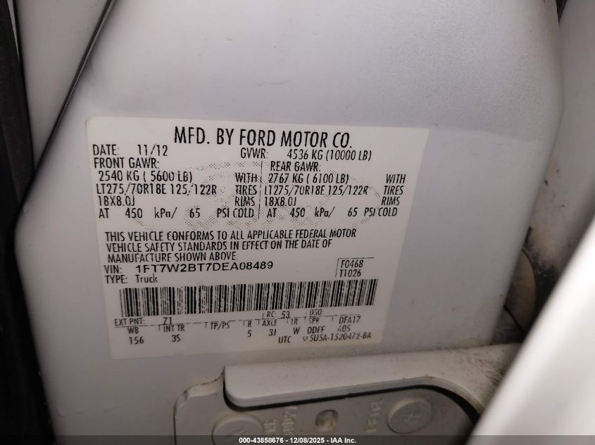 Цвет БелыйЦилиндры 8Привод Полный приводVIN 1FT7W2BT7DEA08489Состояние НеизвестноПовреждения Задняя