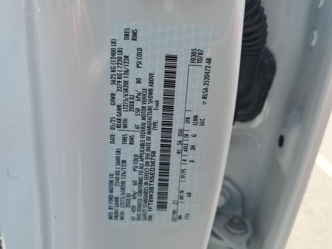 Цвет БелыйЦилиндры 8Привод 4x4 с задним приводомVIN 1FT8W3BT5SED36758Состояние ЗаводитсяПовреждения По бокамДата аукциона 2025-10-09