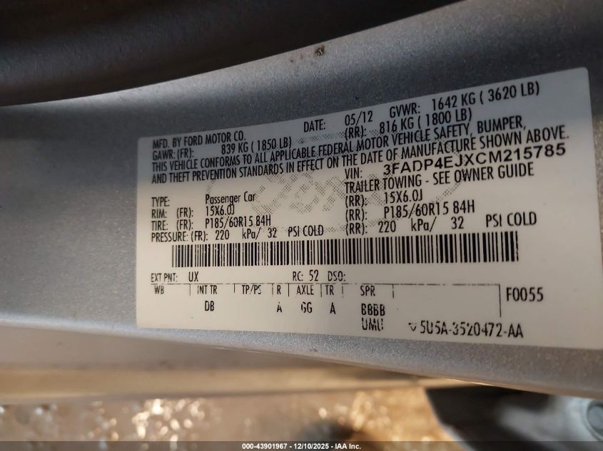 Цвет СеребряныйЦилиндры 4Привод Передний приводVIN 3FADP4EJXCM215785Состояние СтационарноПовреждения Передняя или задняя