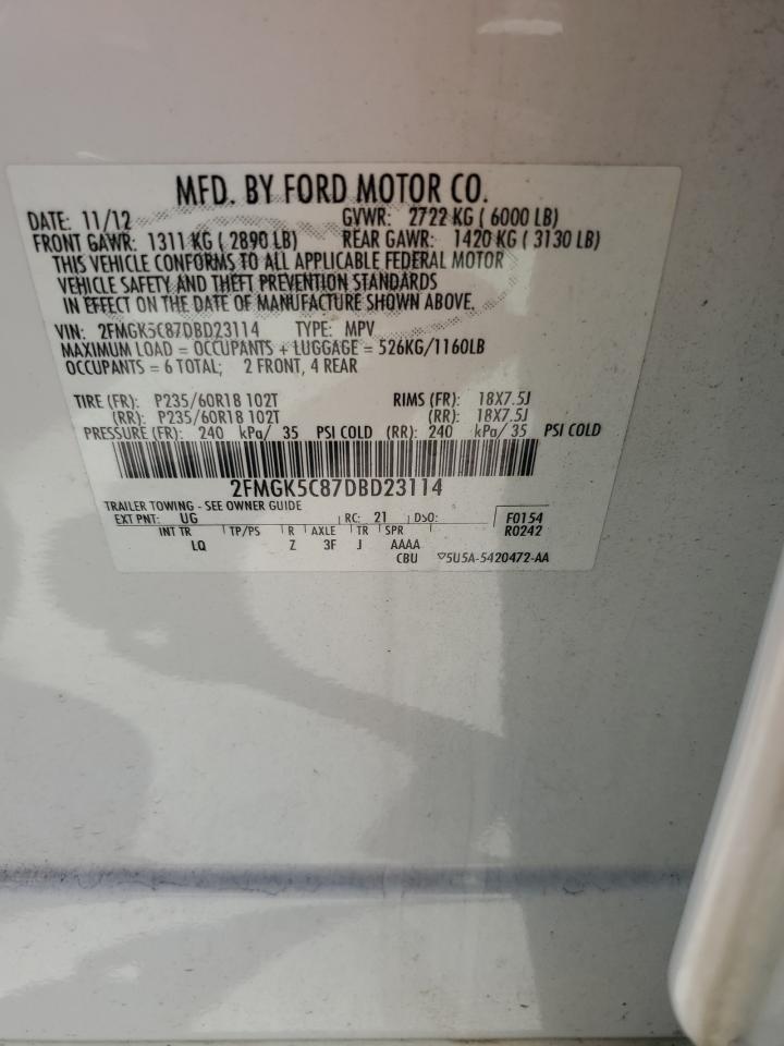 2013 FORD FLEX - 2FMGK5C87DBD23114, цвет - Белый, 3.5, Бензин, из США