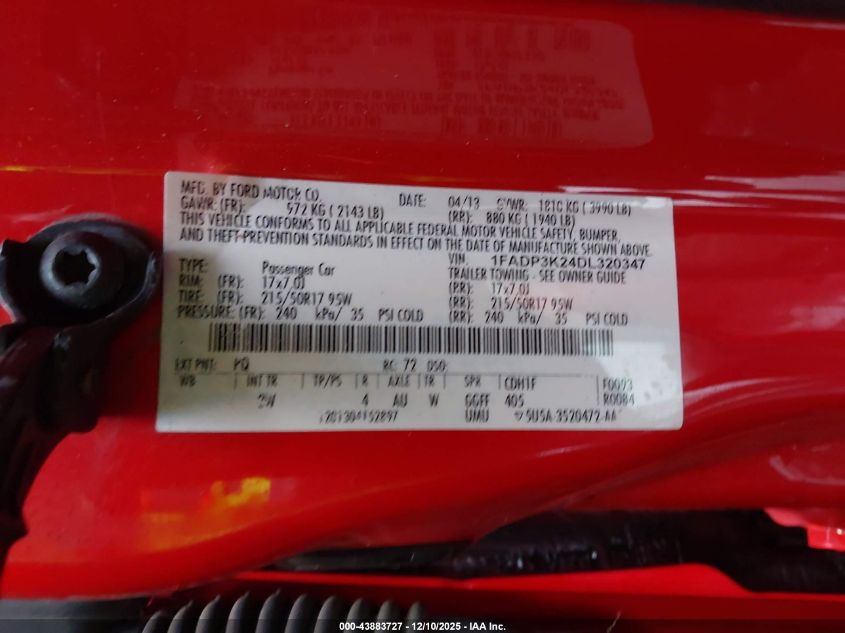 Цвет КрасныйЦилиндры 4Привод Передний приводVIN 1FADP3K24DL320347Состояние ЗаводитсяПовреждения Передняя или задняя