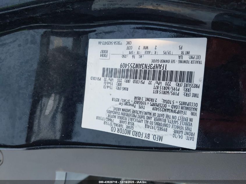 2010 FORD FOCUS - 1FAHP3FN3AW255409, цвет - Черный, 2.0, Бензин, Передний привод из США