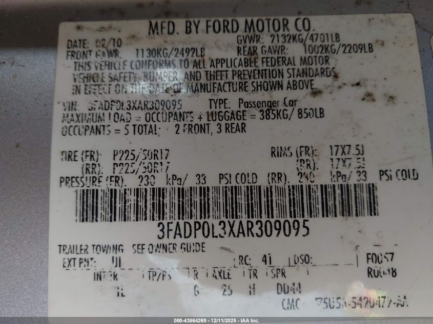 Цвет СеребряныйЦилиндры 4Привод Передний приводVIN 3FADP0L3XAR309095Состояние СтационарноПовреждения Передняя или задняя