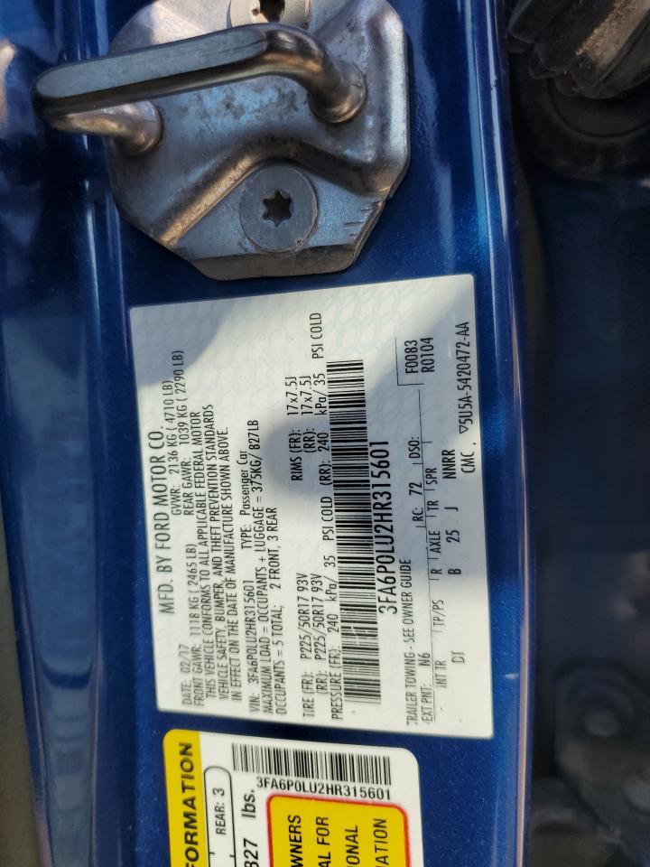 2017 FORD FUSION HYBRID - 3FA6P0LU2HR315601, цвет - Синий, 2.0, Гибрид, из США