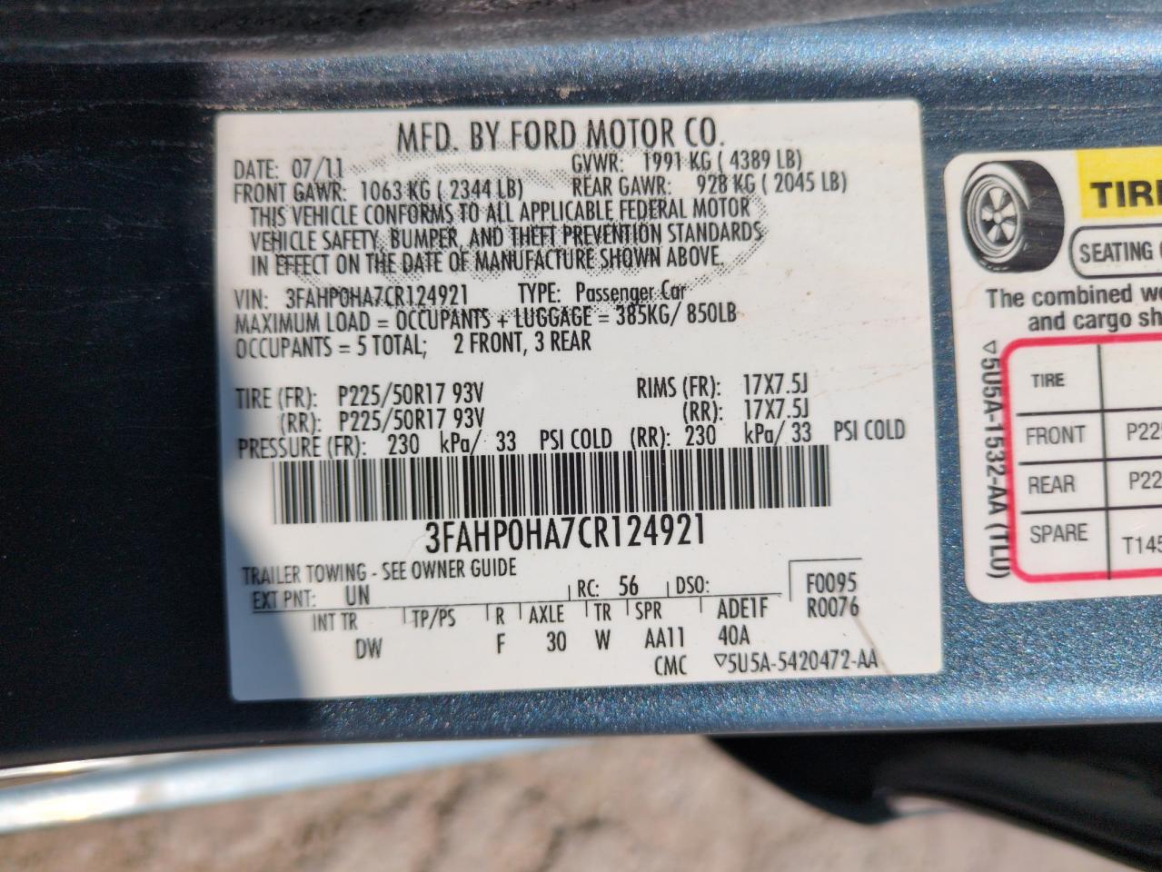 2012 FORD FUSION - 3FAHP0HA7CR124921, цвет - Синий, 2.5, Бензин, из США