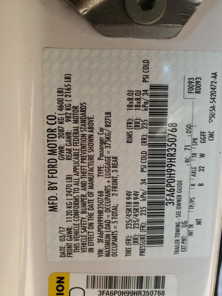 2017 FORD FUSION - 3FA6P0H99HR350768, цвет - Белый, 2.0, Бензин, из США
