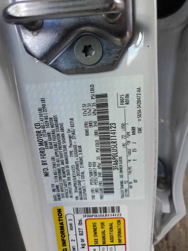 2020 FORD FUSION - 3FA6P0LU5LR114123, цвет - Белый, 2.0, Гибрид, из США