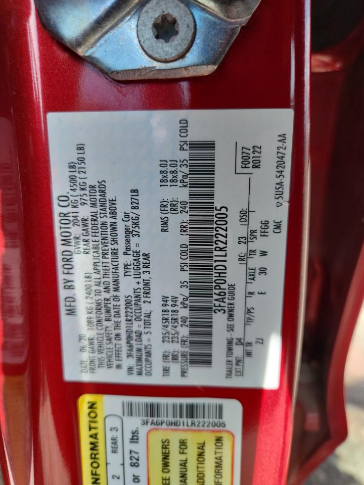 2020 FORD FUSION - 3FA6P0HD1LR222005, цвет - Красный, 1.5, Бензин, из США