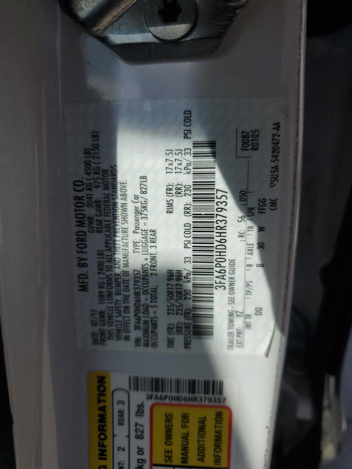 2017 FORD FUSION - 3FA6P0HD6HR379357, цвет - Белый, 1.5, Бензин, из США
