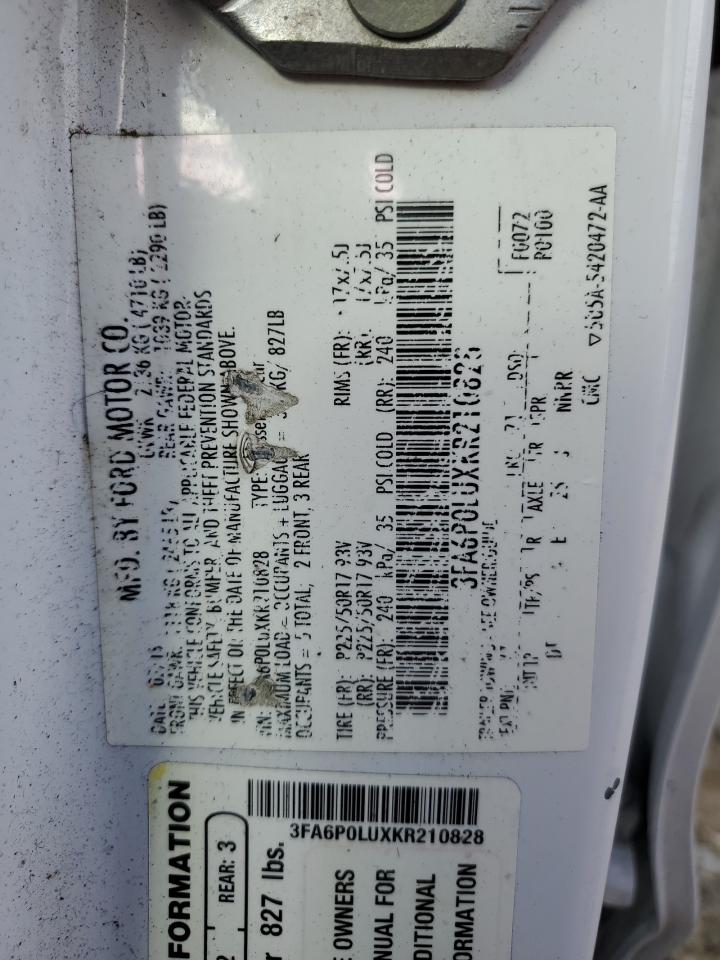2019 FORD FUSION - 3FA6P0LUXKR210828, цвет - Белый, 2.0, Гибрид, из США