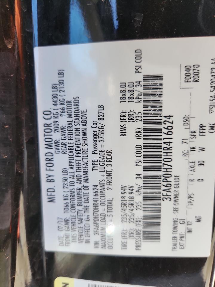 Цвет ЧерныйЦилиндры 4VIN 3FA6P0H70HR416624Состояние НеизвестноПовреждения Передняя или задняя