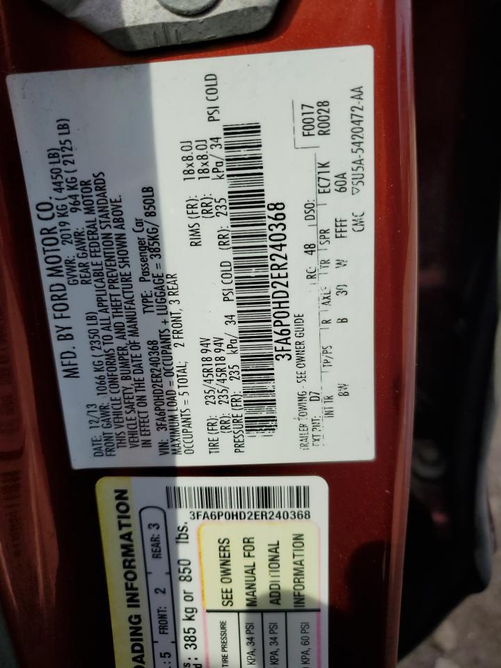 2014 FORD FUSION - 3FA6P0HD2ER240368, цвет - Красный, 1.5, Бензин, из США