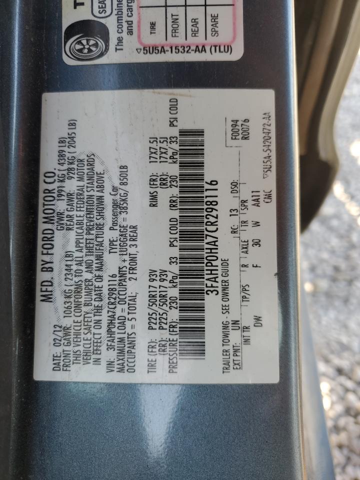 2012 FORD FUSION - 3FAHP0HA7CR298116, цвет - Синий, 2.5, Бензин, из США