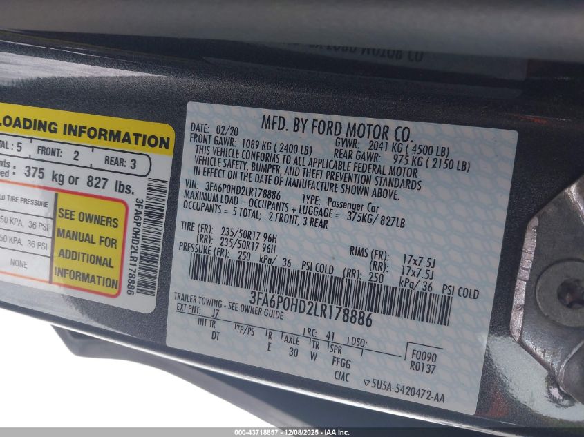 2020 FORD FUSION - 3FA6P0HD2LR178886, цвет - Серый, 1.5, Бензин, Передний привод из США