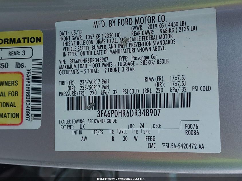 2013 FORD FUSION - 3FA6P0HR6DR348907, цвет - Серебряный, 1.6, Бензин, Передний привод из США