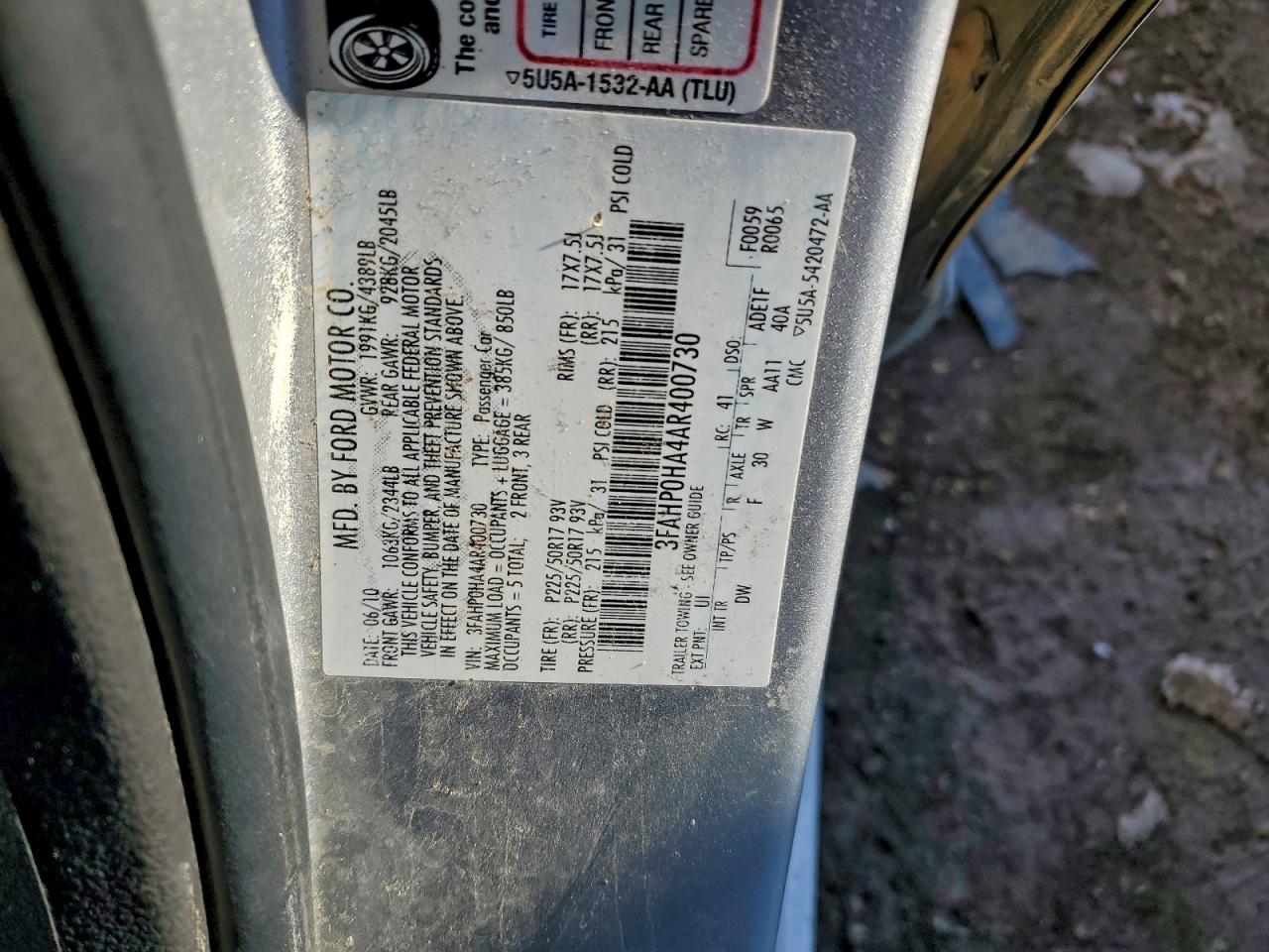 Цвет СеребряныйЦилиндры 4VIN 3FAHP0HA4AR400730Состояние НеизвестноПовреждения Задняя