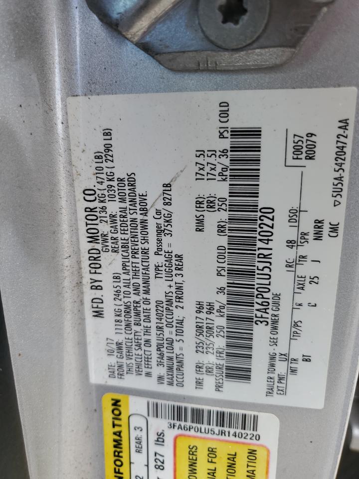 Цвет СеребряныйЦилиндры 4VIN 3FA6P0LU5JR140220Состояние НеизвестноПовреждения Передняя или задняя
