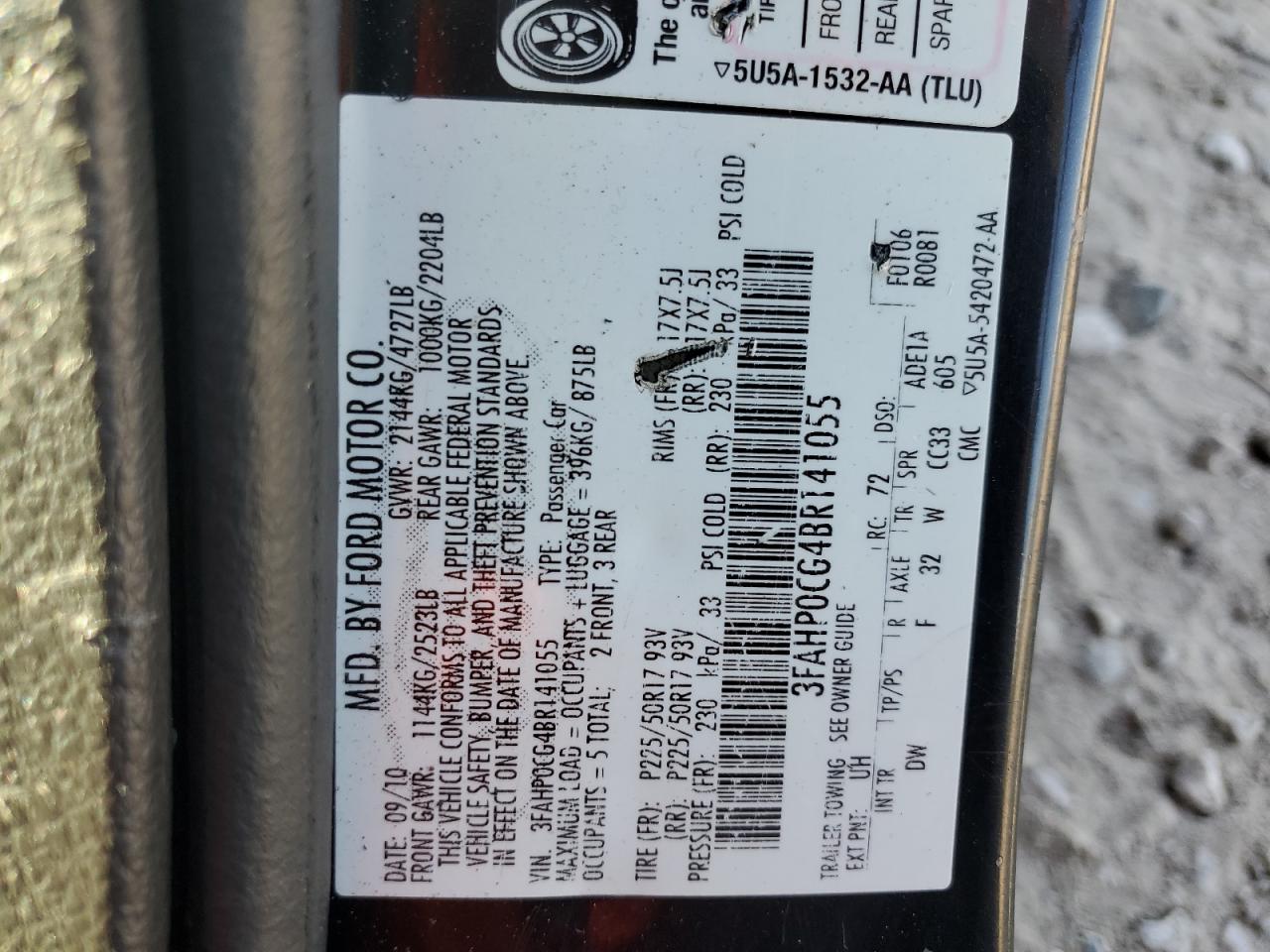 Цвет ЧерныйЦилиндры 6Привод Полный приводVIN 3FAHP0CG4BR141055Состояние Заводится и едет (проверено)Повреждения НезначительныеДата аукциона 2025-10-09