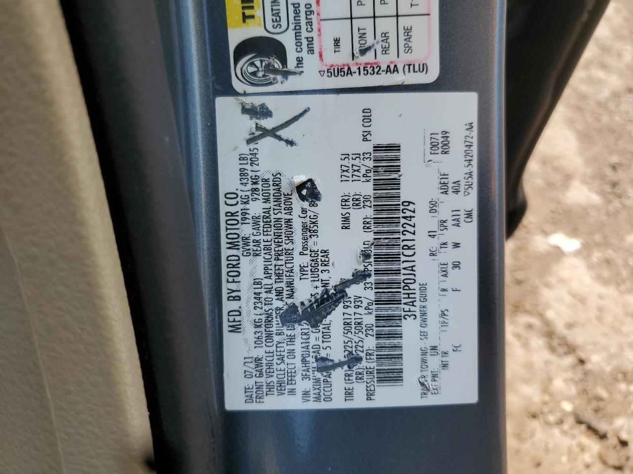 Цвет СинийЦилиндры 4VIN 3FAHP0JA1CR122429Состояние НеизвестноПовреждения ВодаДата аукциона 2025-10-07