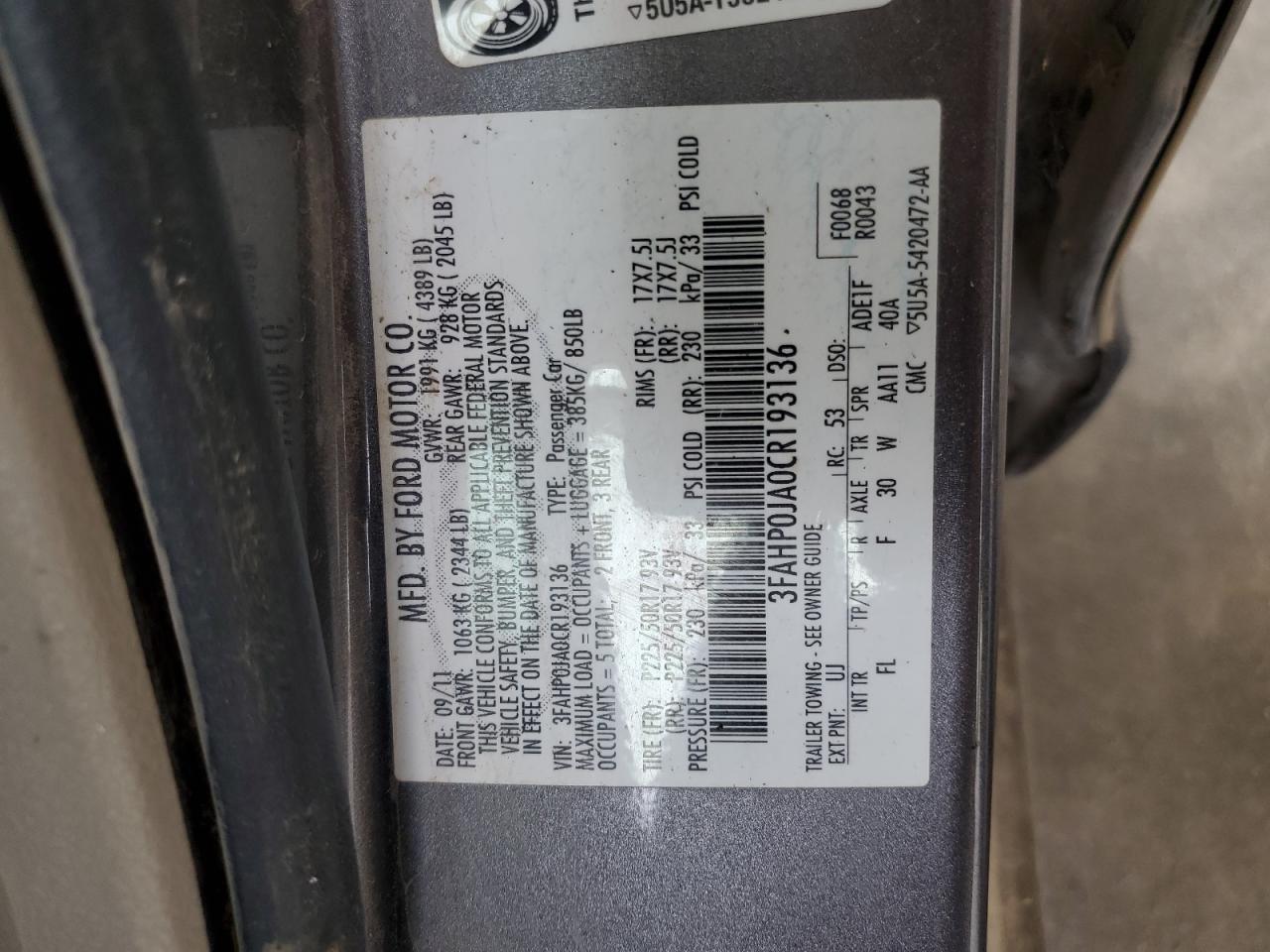 Цвет СерыйЦилиндры 4VIN 3FAHP0JA0CR193136Состояние Заводится и едет (проверено)Повреждения КрышаДата аукциона 2025-10-07