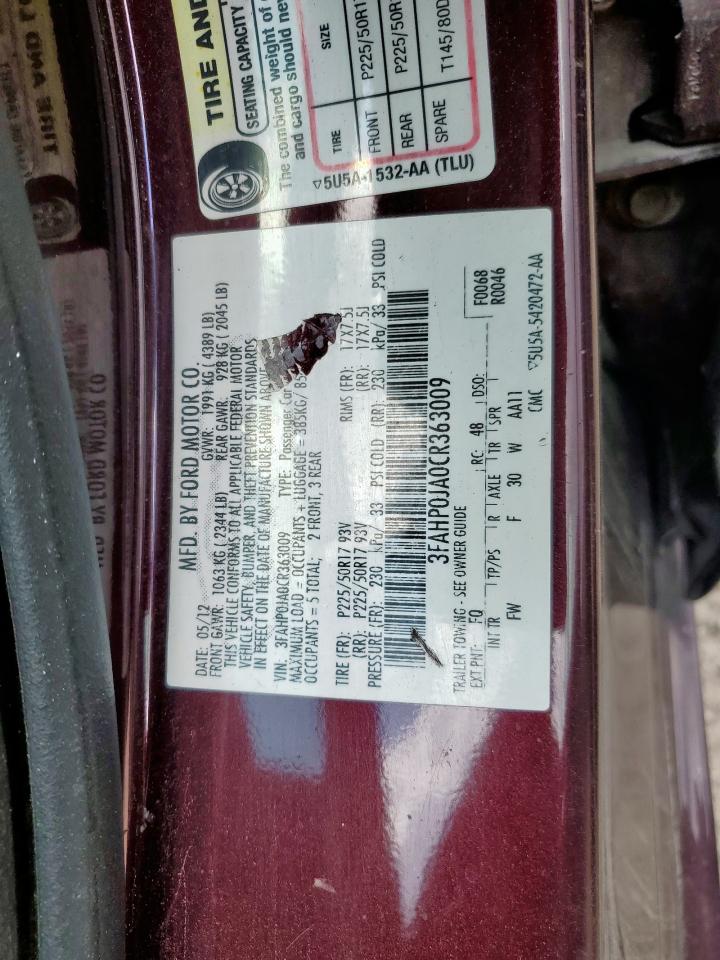 2012 FORD FUSION - 3FAHP0JA0CR363009, цвет - Бургундия, 2.5, Бензин, из США