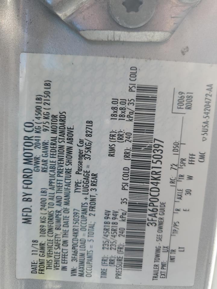 2019 FORD FUSION - 3FA6P0CD4KR150397, цвет - Серебряный, 1.5, Бензин, из США