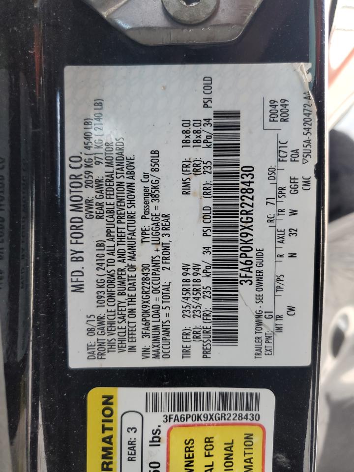 2016 FORD FUSION - 3FA6P0K9XGR228430, цвет - Черный, 2.0, Бензин, из США