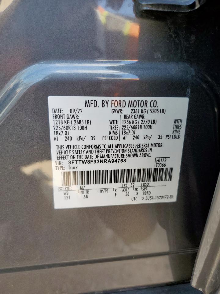 2022 FORD MAVERICK - 3FTTW8F93NRA94768, цвет - Серый, 2.0, Бензин, Полный привод из США