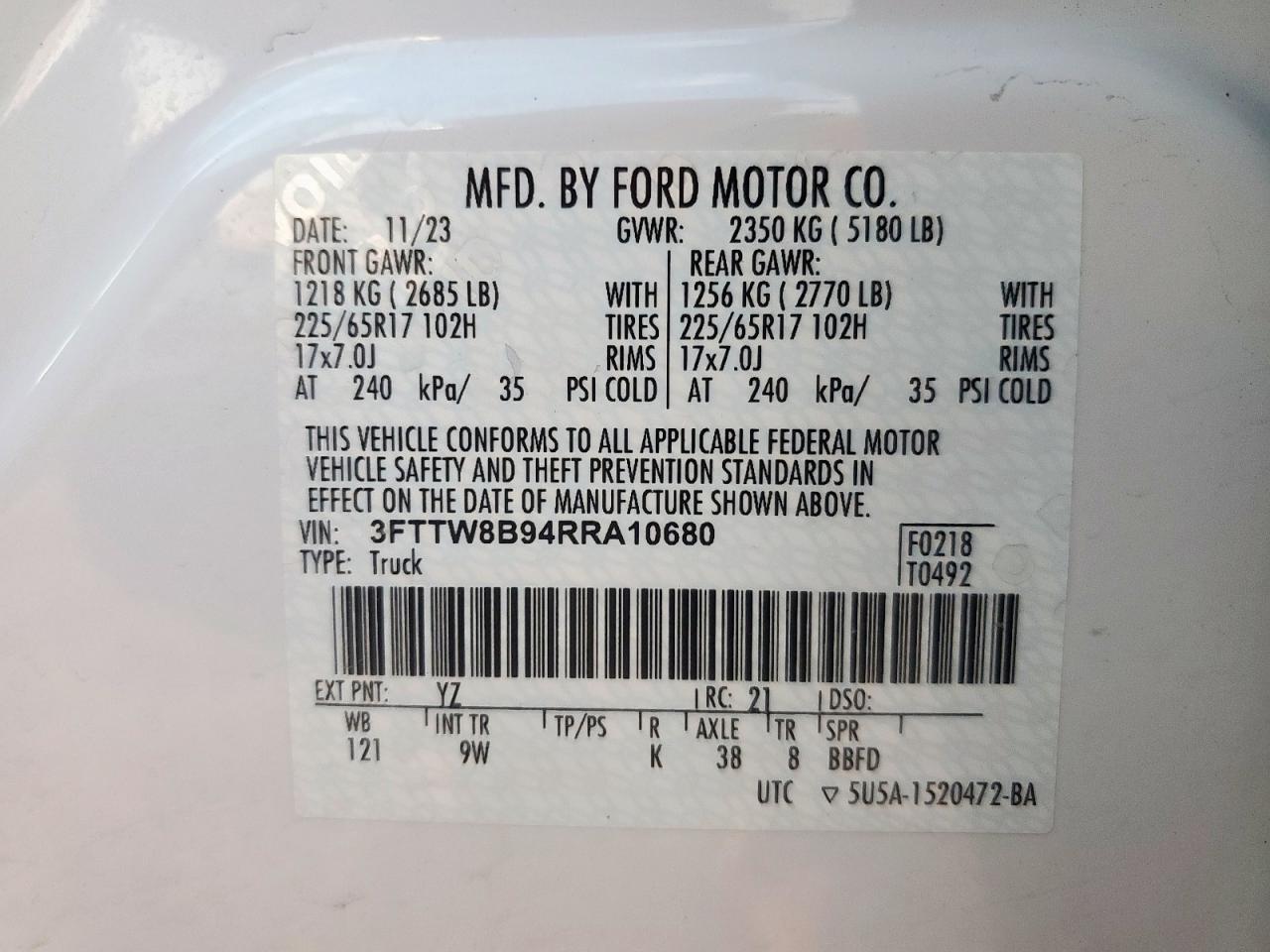 2024 FORD MAVERICK - 3FTTW8B94RRA10680, цвет - Белый, 2.0, Бензин, Полный привод из США