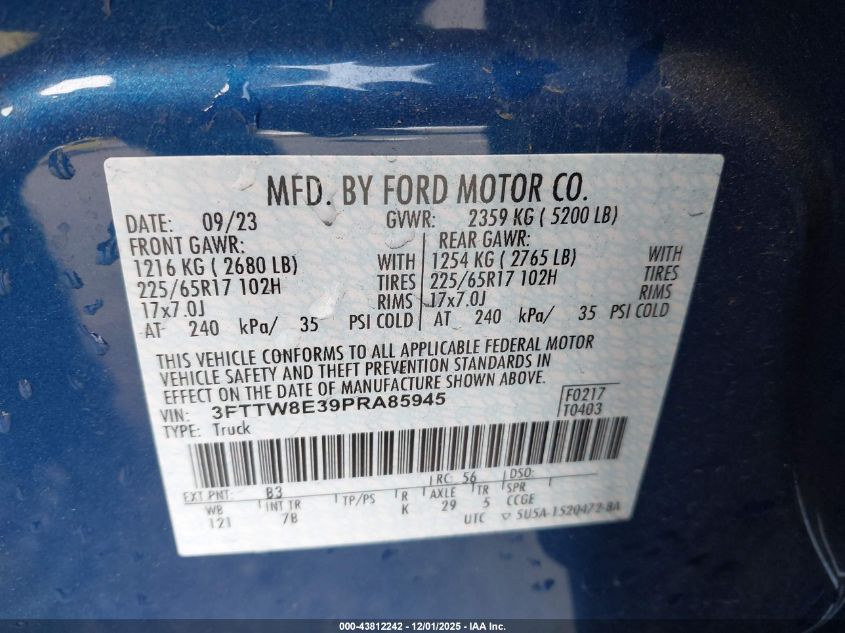 Цвет СинийЦилиндры 4Привод Передний приводVIN 3FTTW8E39PRA85945Состояние СтационарноПовреждения Передняя или задняя