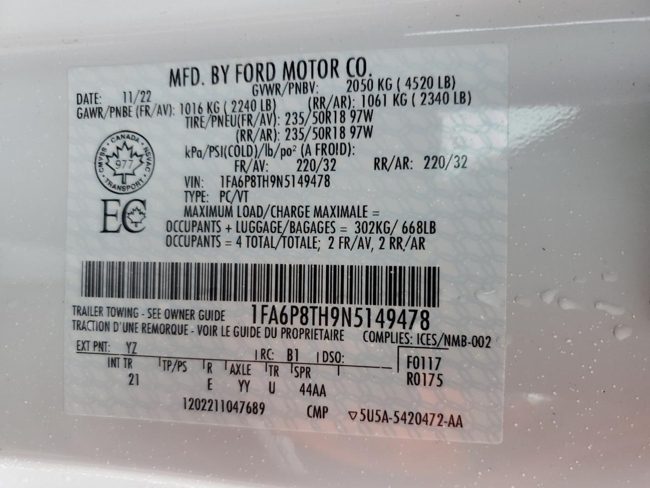 2022 FORD MUSTANG - 1FA6P8TH9N5149478, цвет - Белый, 2.3, Бензин, Задний привод из США