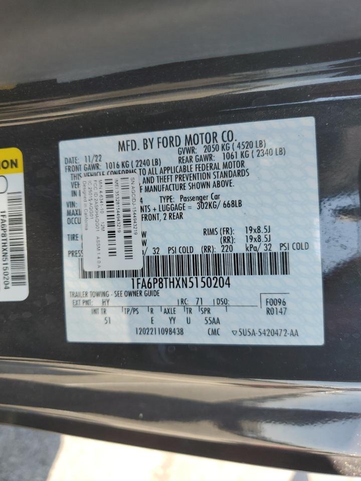 2022 FORD MUSTANG - 1FA6P8THXN5150204, цвет - Серый, 2.3, Бензин, Задний привод из США