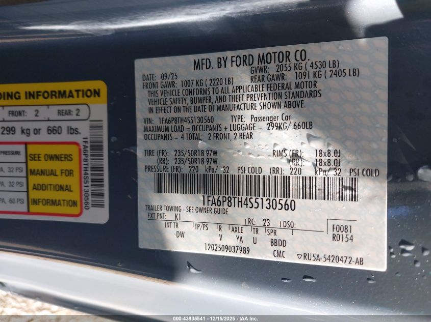 2025 FORD MUSTANG - 1FA6P8TH4S5130560, цвет - Серый, 2.3, Бензин, Задний привод из США