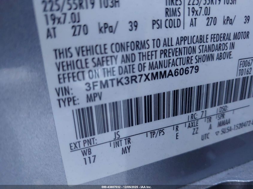 Цвет СерыйVIN 3FMTK3R7XMMA60679Состояние НеизвестноПовреждения Передняя или задняя