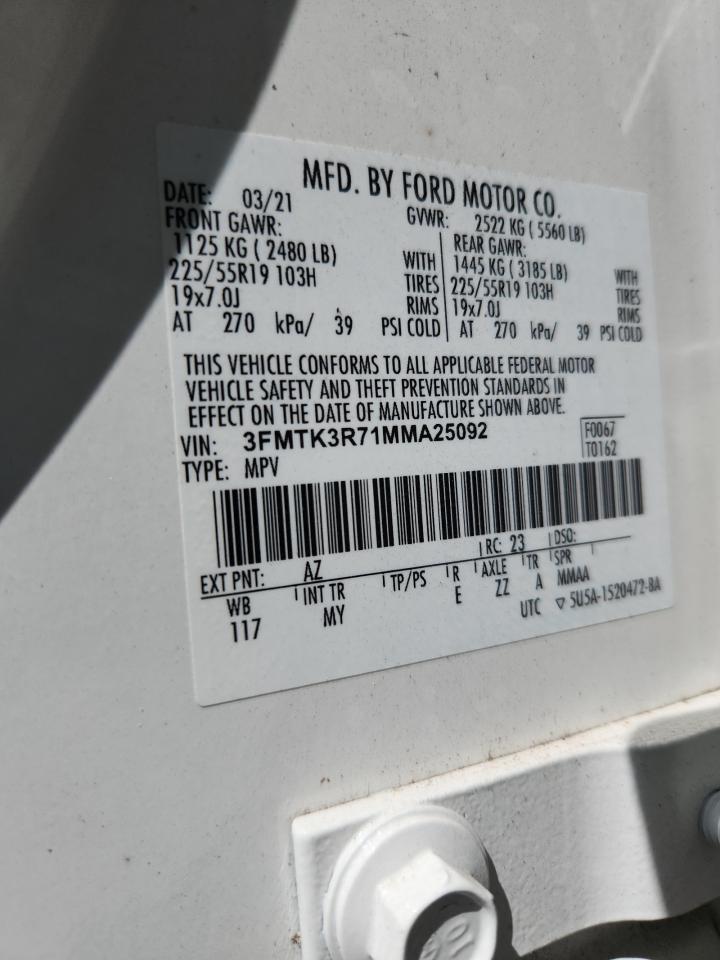 2021 FORD MUSTANG - 3FMTK3R71MMA25092, цвет - Белый, , Электрический, Задний привод из США