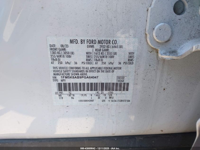 Цвет БелыйЦилиндры 6Привод Полный приводVIN 1FM5K8AB9PGA64047Состояние СтационарноПовреждения Передняя или задняя