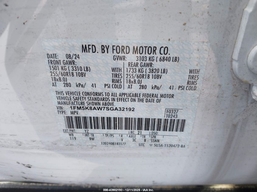 2025 FORD POLICE INTERCEPTOR - 1FM5K8AW7SGA32192, цвет - Белый, 3.3, Гибрид, Полный привод из США