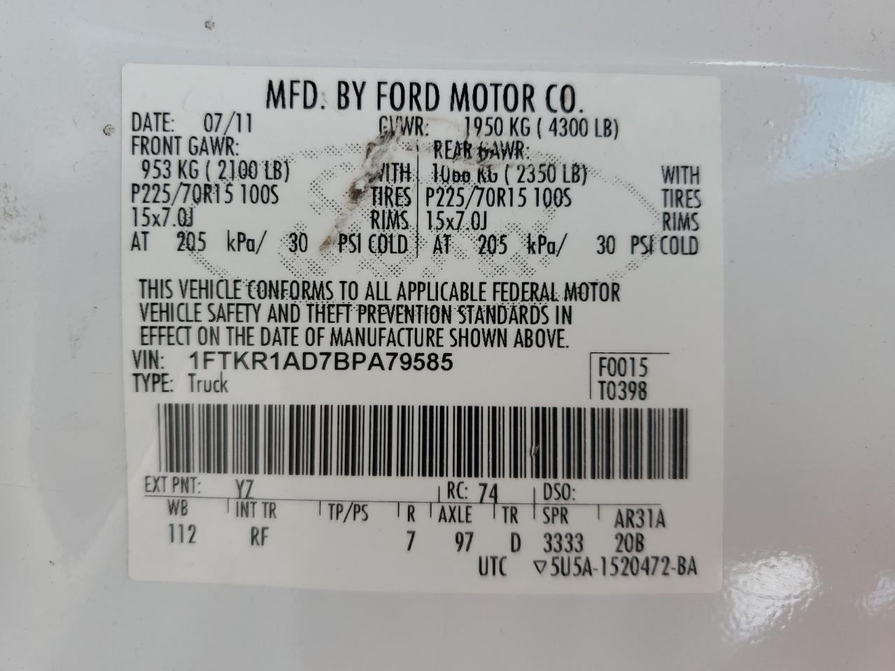 2011 FORD RANGER - 1FTKR1AD7BPA79585, цвет - Белый, 2.3, Бензин, Задний привод из США