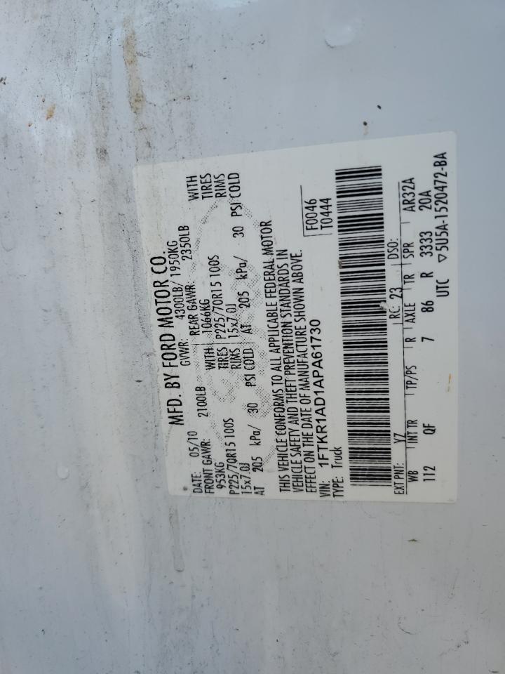 2010 FORD RANGER - 1FTKR1AD1APA61730, цвет - Белый, 2.3, Бензин, Задний привод из США