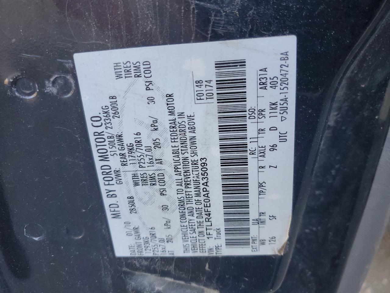 2010 FORD RANGER - 1FTLR4FE0APA35093, цвет - Черный, 4.0, Бензин, 4x4 с задним приводом из США