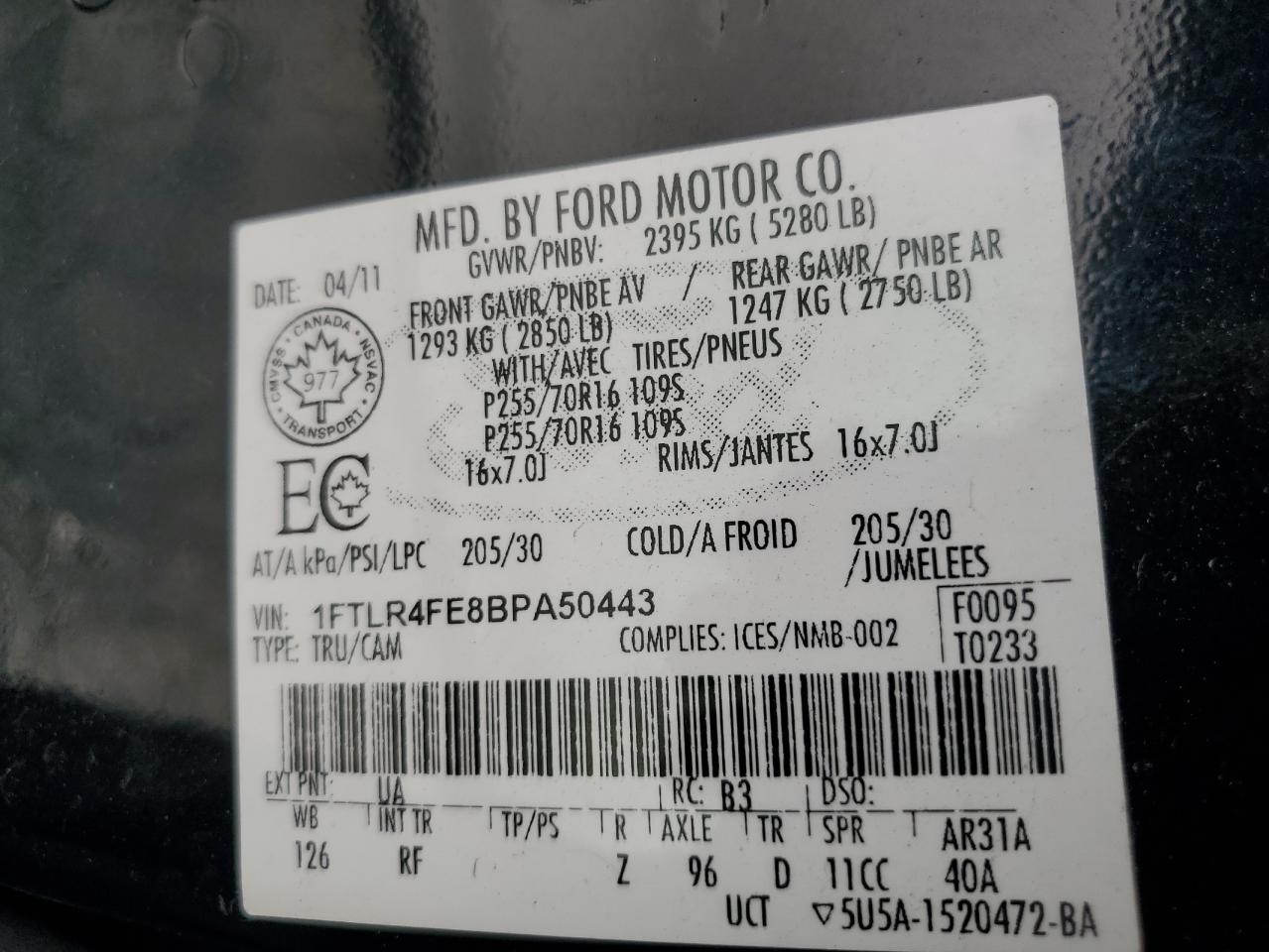 Цвет ЧерныйЦилиндры 6Привод 4x4 с задним приводомVIN 1FTLR4FE8BPA50443Состояние Заводится и едет (проверено)Повреждения НезначительныеДата аукциона 2025-10-08
