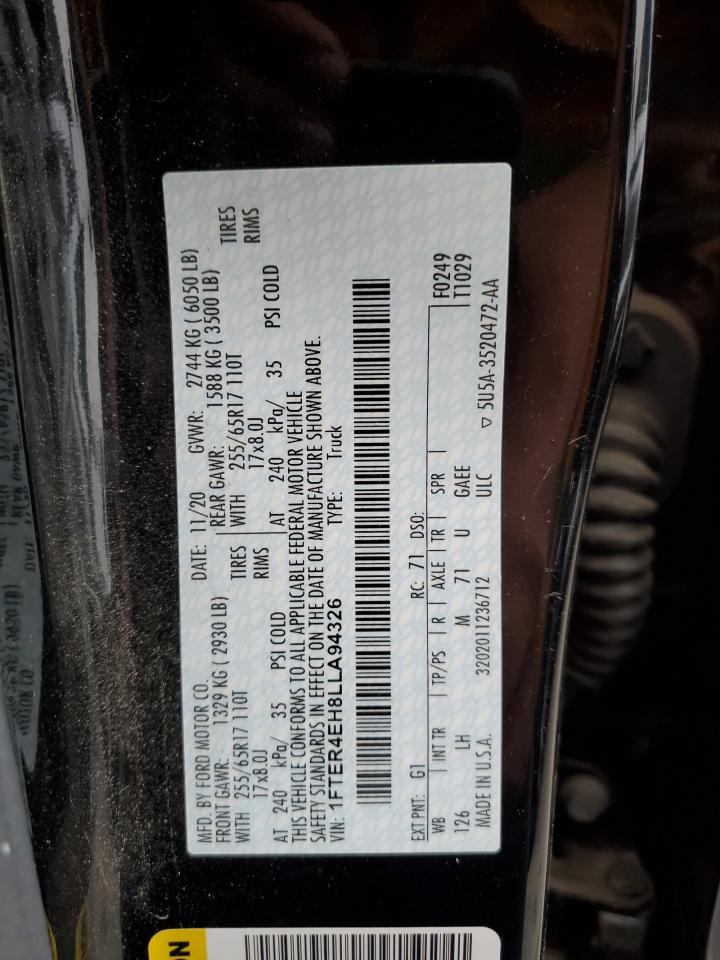 2020 FORD RANGER - 1FTER4EH8LLA94326, цвет - Черный, 2.3, Бензин, Задний привод из США