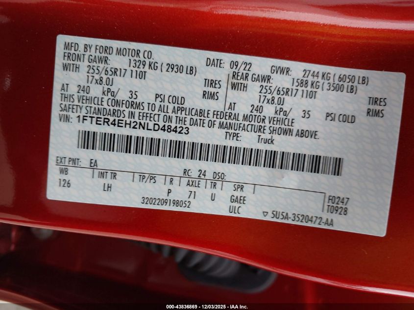 2022 FORD RANGER - 1FTER4EH2NLD48423, цвет - Коричневий, 2.3, Бензин, из США