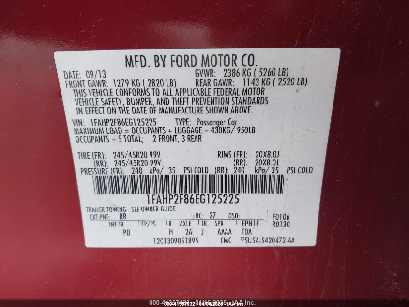 2014 FORD TAURUS - 1FAHP2F86EG125225, цвет - Бордовый, 3.5, Бензин, Передний привод из США