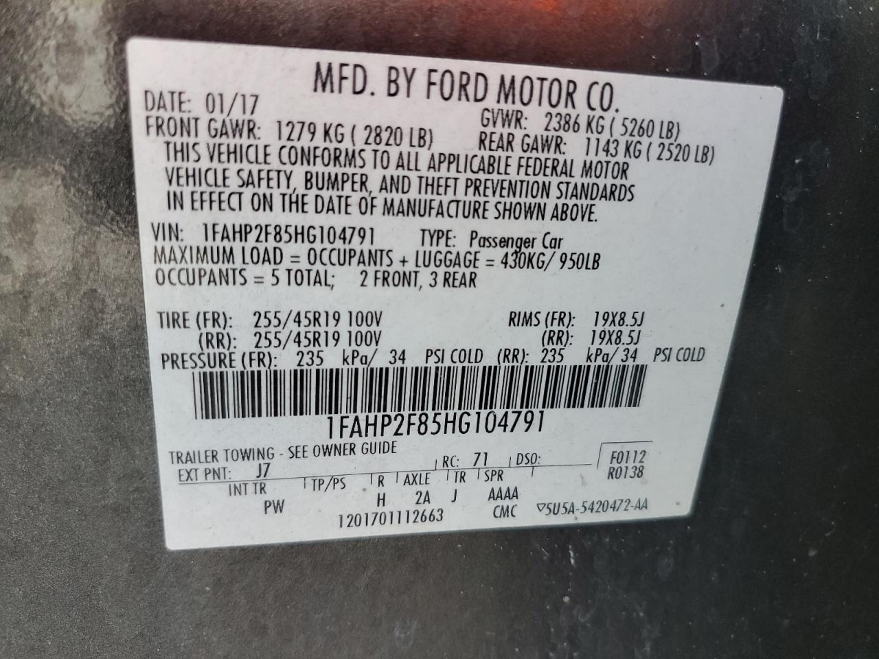 Цвет СерыйЦилиндры 6VIN 1FAHP2F85HG104791Состояние НеизвестноПовреждения По бокамДата аукциона 2025-10-10