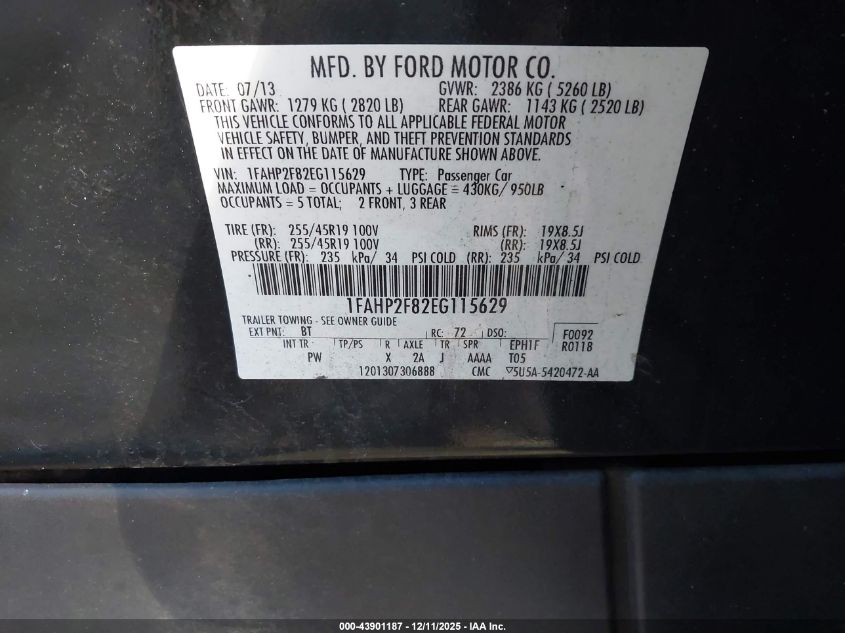 2014 FORD TAURUS - 1FAHP2F82EG115629, цвет - Черный, 3.5, Бензин, Передний привод из США