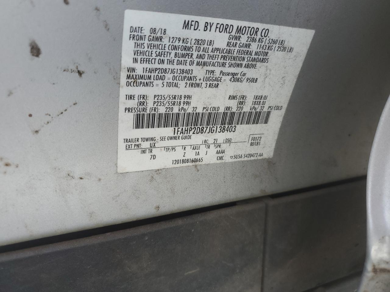 Цвет СеребряныйЦилиндры 6VIN 1FAHP2D87JG138403Состояние Заводится и едет (проверено)Повреждения ЗадняяДата аукциона 2025-10-08