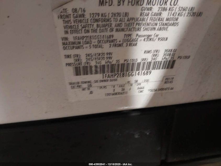 Цвет БелыйЦилиндры 6Привод Передний приводVIN 1FAHP2E81GG141689Состояние СтационарноПовреждения Передняя или задняя