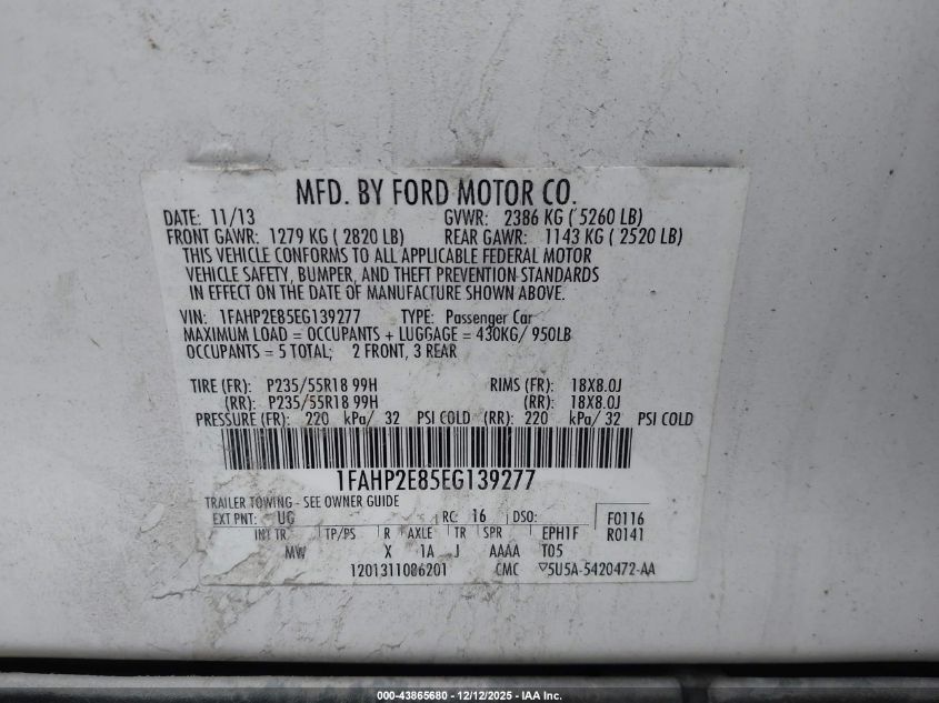 2014 FORD TAURUS - 1FAHP2E85EG139277, цвет - Белый, 3.5, Бензин, Передний привод из США
